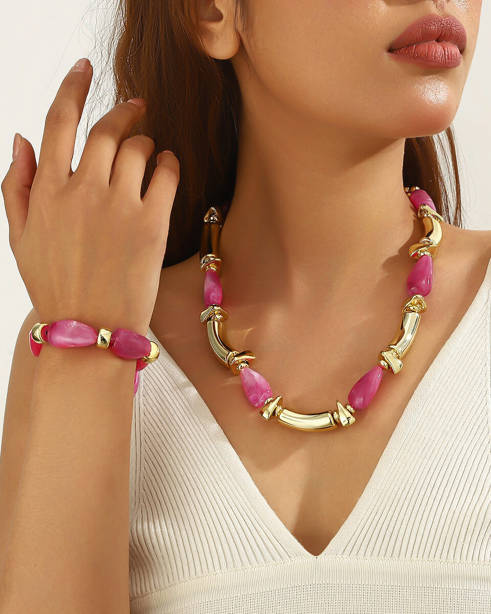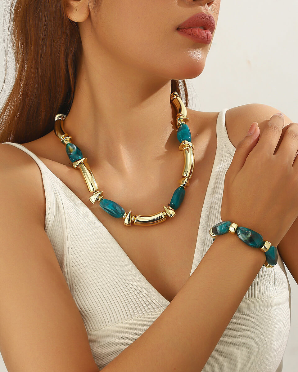 Irregular Charm Beaded Jewelry Set Statement Choker Bracelet