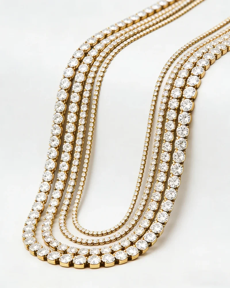 The classic linear design of this tennis chain offers a sleek, luxurious look that never goes out of style. It’s perfect for layering with other necklaces or wearing alone as a statement piece, making it versatile for everyday wear, formal occasions, or hip-hop/urban fashion.