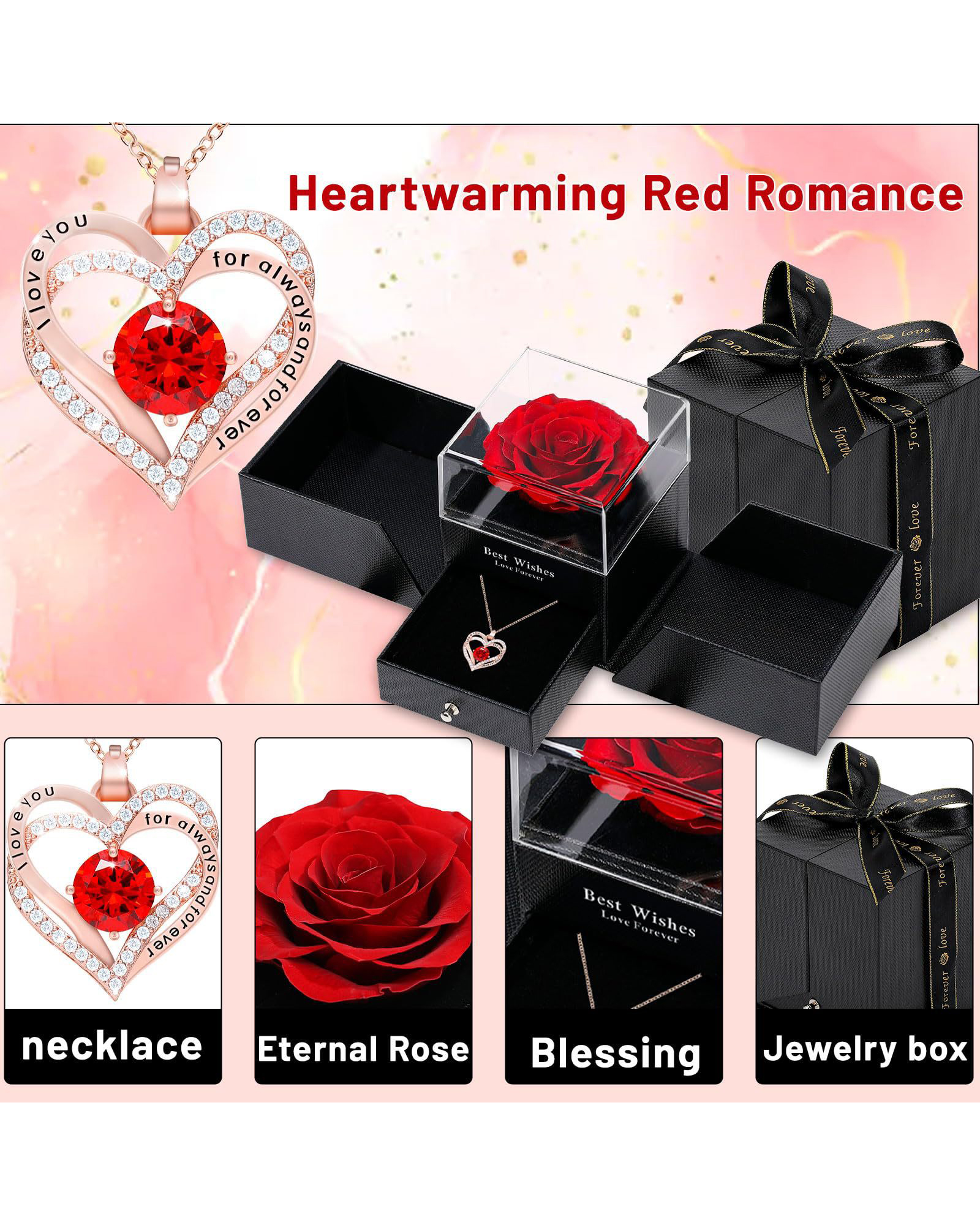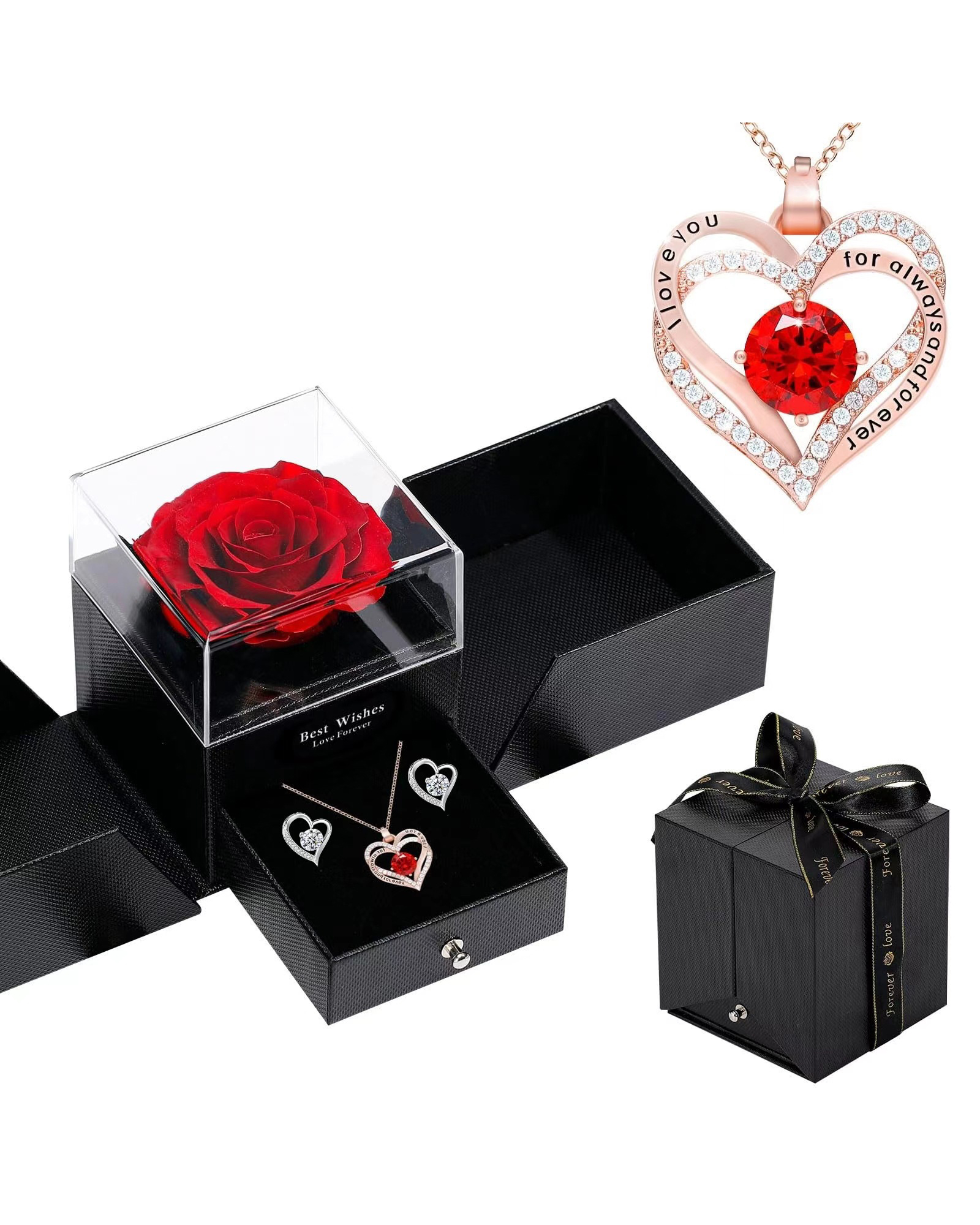 Eternal Rose Necklace Pendant and Earrings Set Valentines Gifts