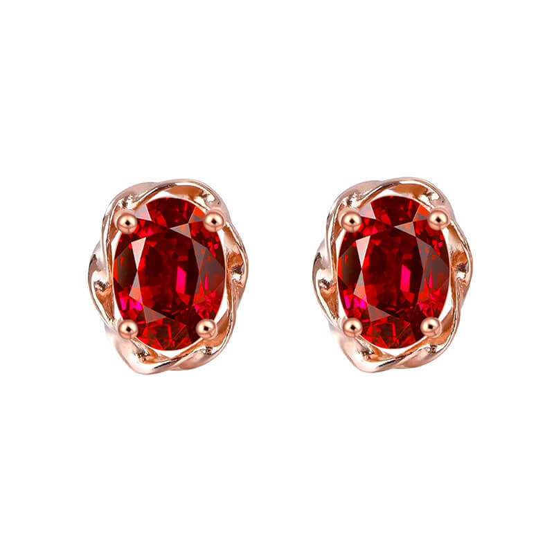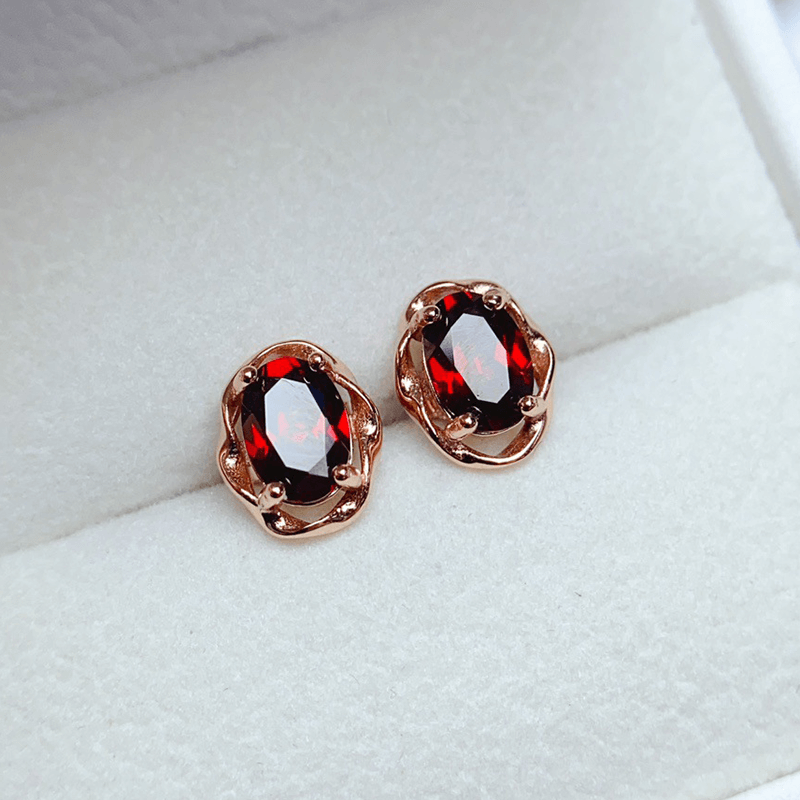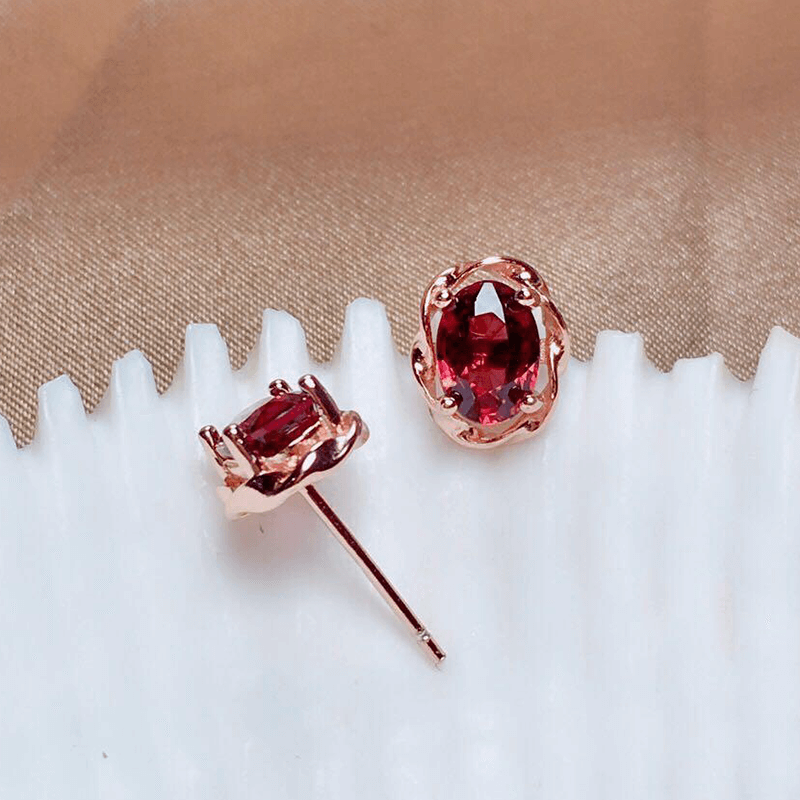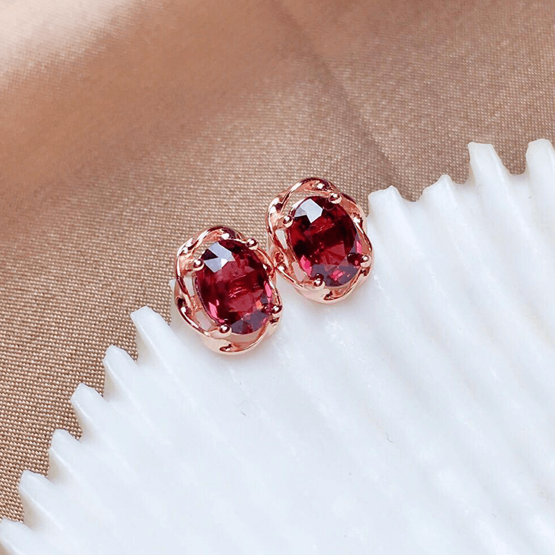 Oval Garnet Stud Flowing Year Design Birthstone Earrings