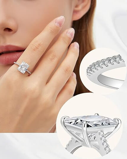 The diamond ring has a simple rectangular shape and exudes an elegant aura. This timeless design can elongate the length of the finger and add a touch of retro sophistication, making it a versatile choice suitable for engagement rings and daily wear.