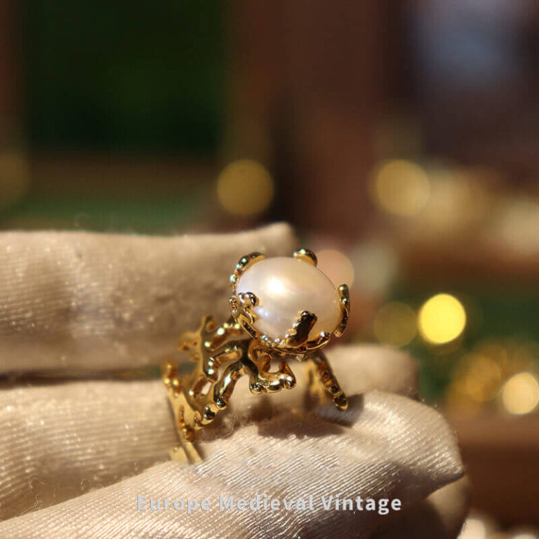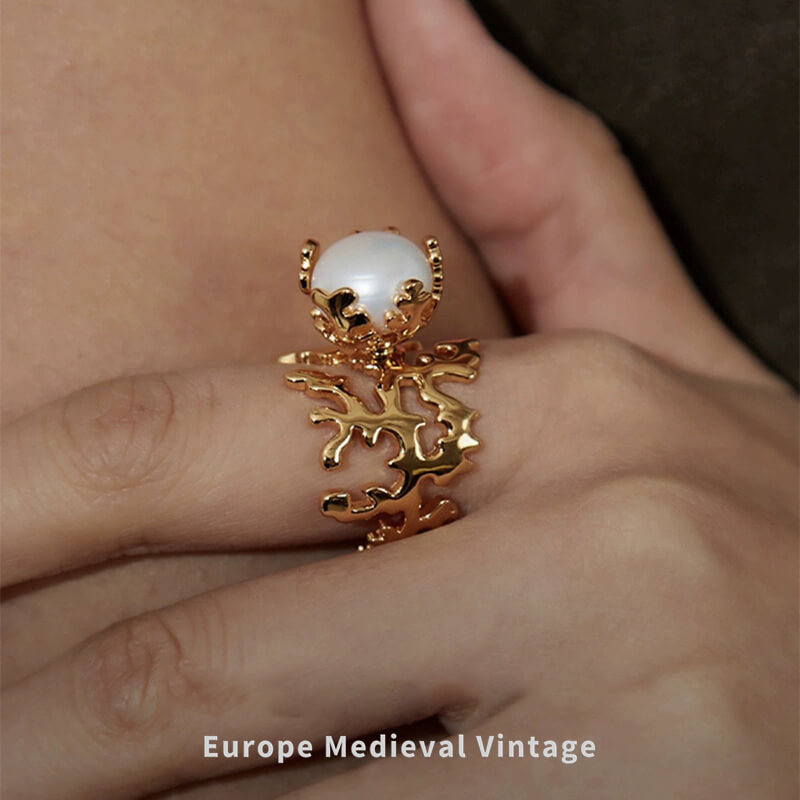 - This vintage baroque pearl ring is featured with the plated entwine coral branch which reflect the romance of classicism. There is a baroque pearl at the center of a natural coral branch.