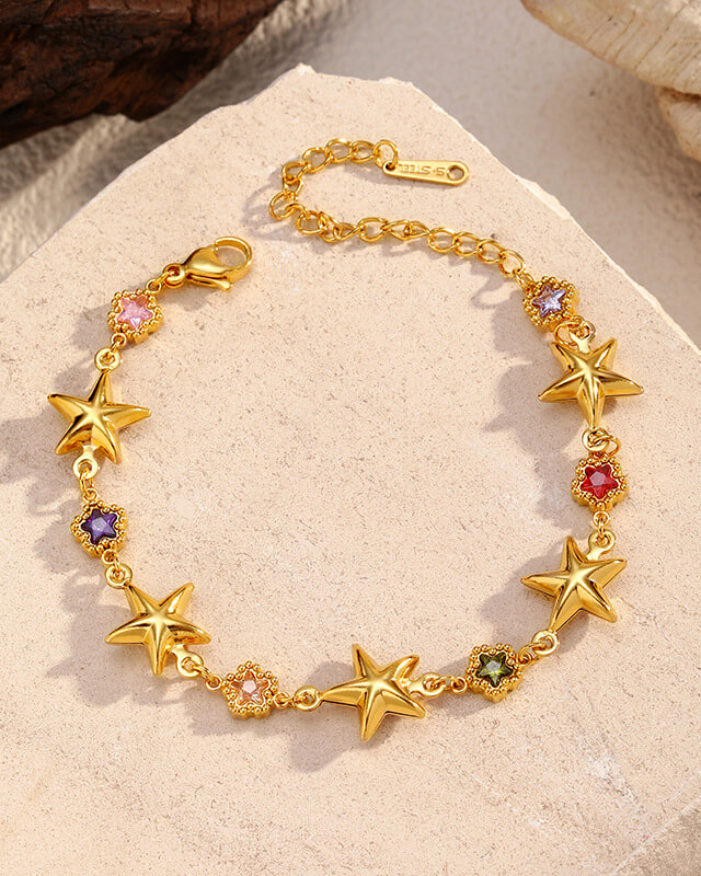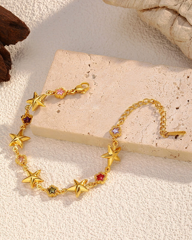 Dainty Sparkly Colorful Starfish Charm Bracelet 18K Gold