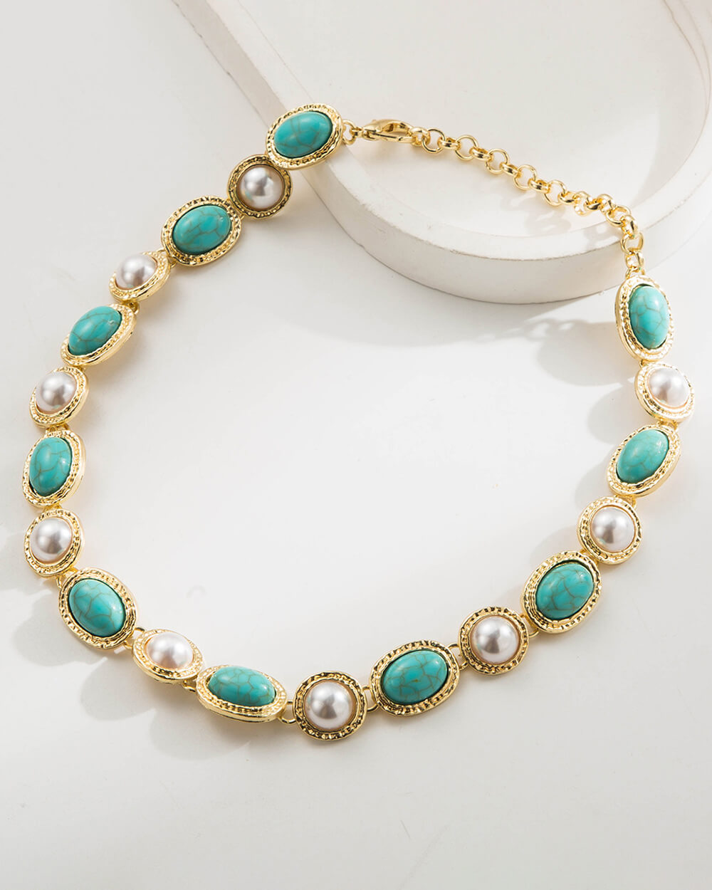 1920s Faux Turquoise Pearls Choker Earrings Jewelry Set